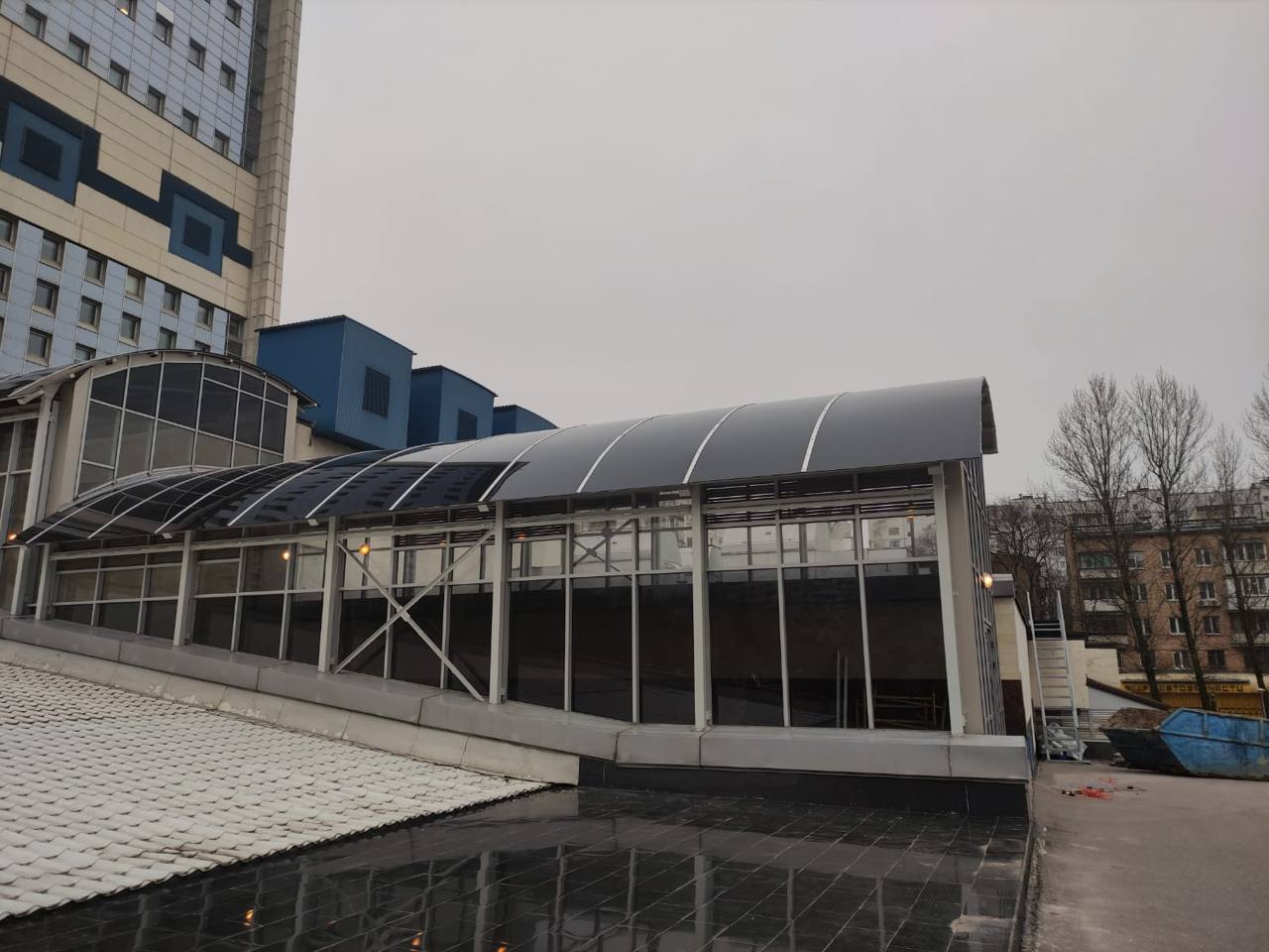 Закончен монтаж монолитного поликарбоната на навесы перед стадионом «Спартак».