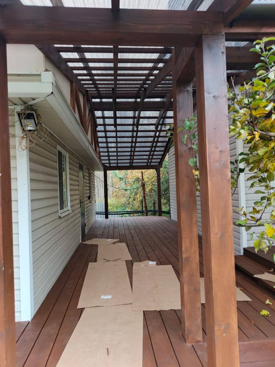 Крыша из монолитного поликарбоната на деревянном каркасе сделана нашим партнером ИП Гаврилин Антон Павлович